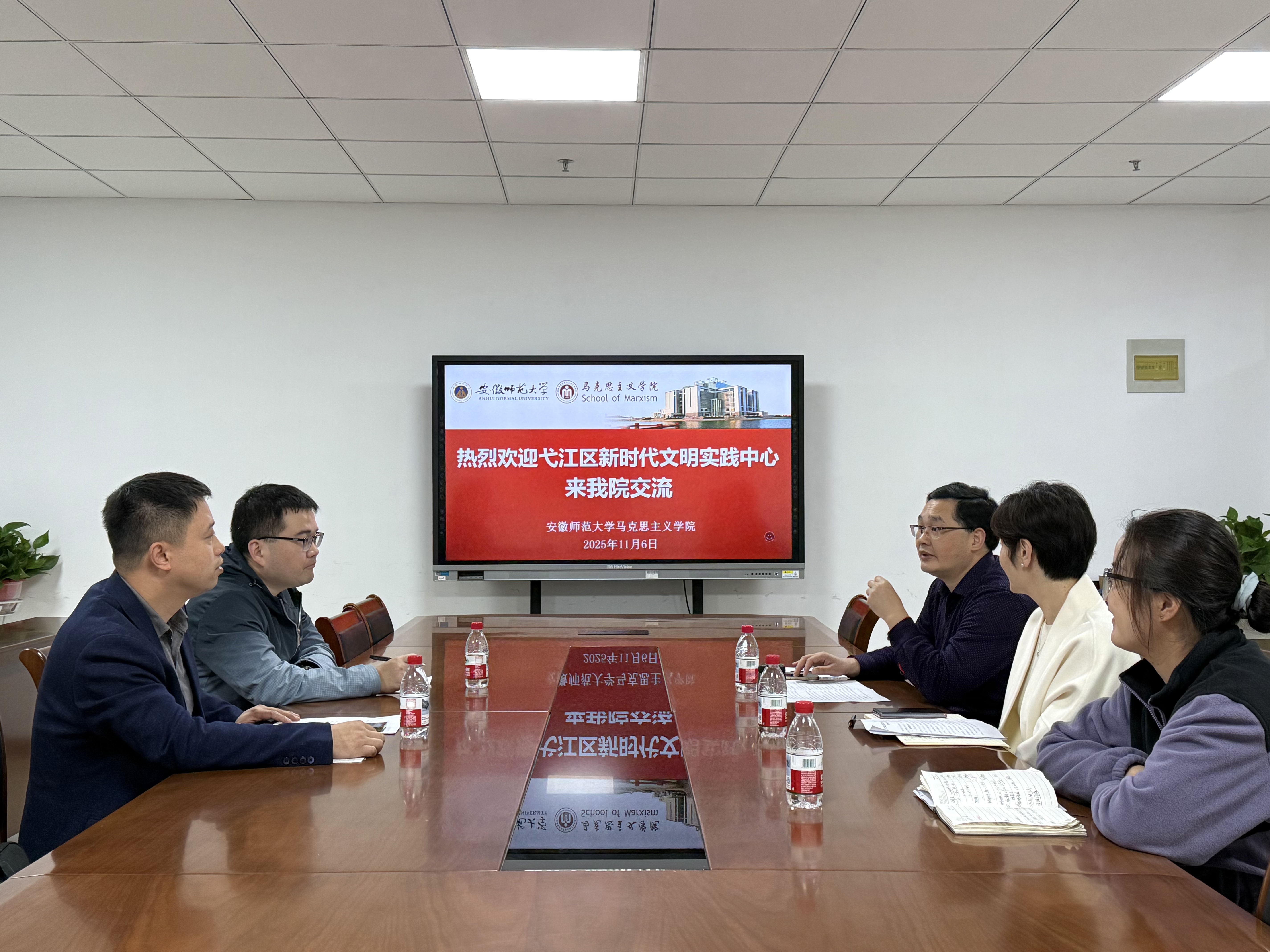 11月6日下午,弋江区委宣传部副部长水心灏一行来我院就理论宣讲赋能文明实践等议题开展交流座谈。学院党委副书记刘玉艳、副院长李祥兴、团委书记陶娴静参会。