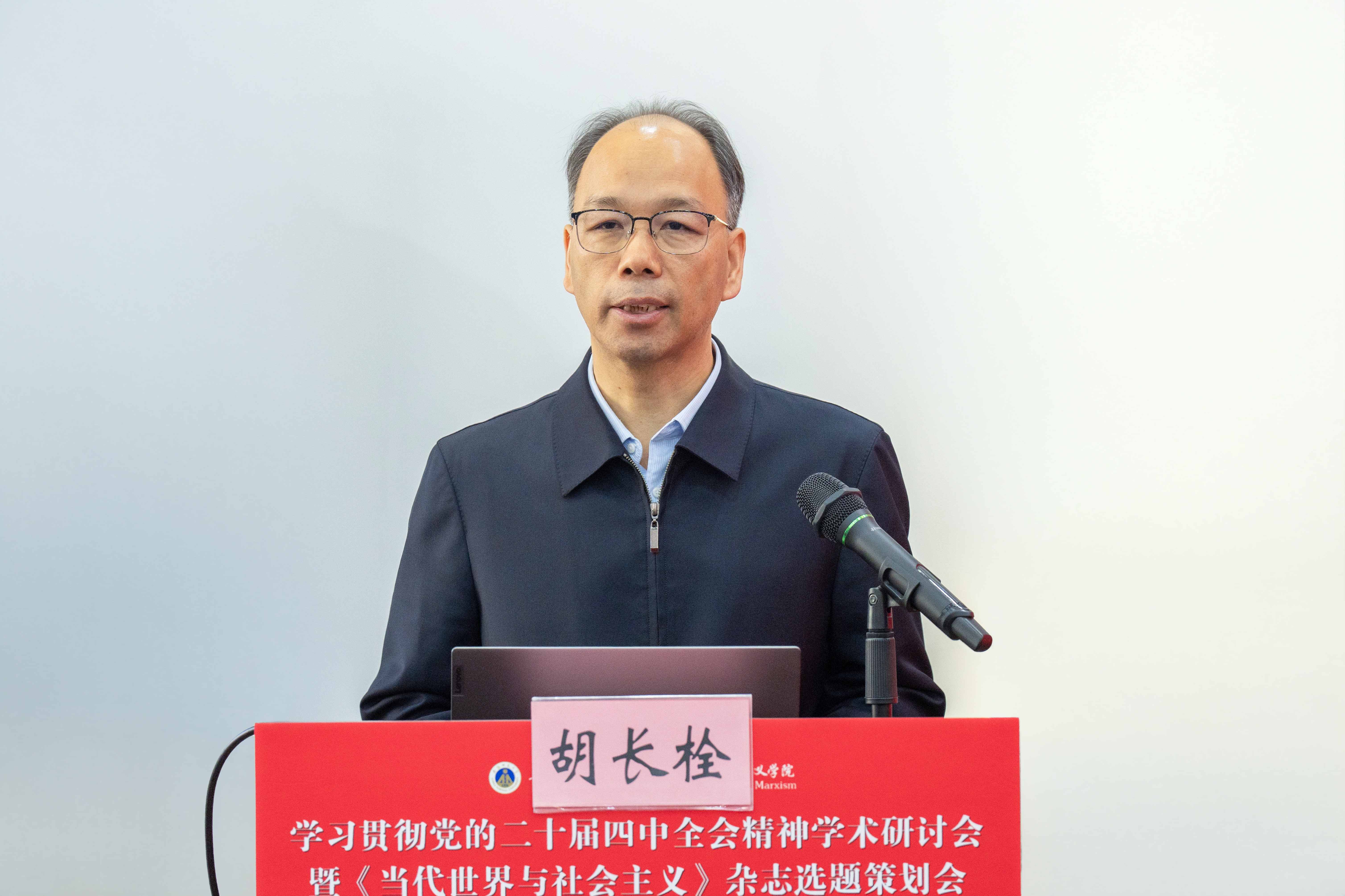 胡长栓对会议的召开表示祝贺,并就相关理论研究及期刊发展进行了展望。他首先强调了学术共同体的人文关怀属性,指出马克思主义研究需秉持“以人为本”的治学理念;继而着重阐述了《当代世界与社会主义》杂志的定位、功能与导向,提出应以党的二十届四中全会精神为指引,进一步激发马克思主义理论研究的创新活力。