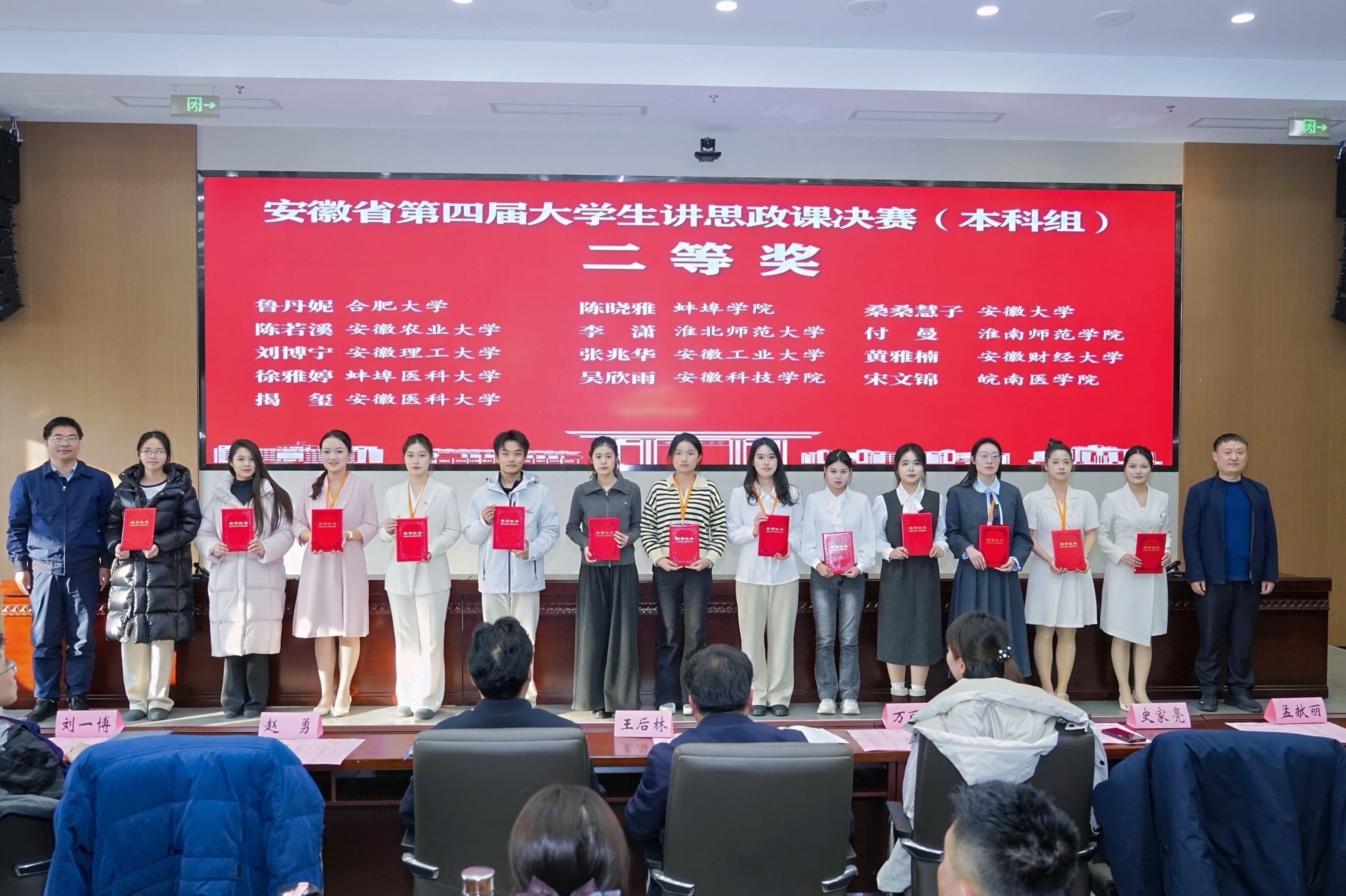 王后林处长在讲话中对本届赛事的成功举办表示热烈祝贺,对承办单位严谨细致、高效有序的组织工作给予高度赞扬,向所有参赛高校、参赛选手、指导教师及专家评委致以诚挚感谢,并现场宣读获奖名单。他强调,本次比赛中,参赛同学不仅展现了扎实的理论功底和良好的精神风貌,更立足安徽实际融入地方资源,生动展现了近年来安徽省思政课育人成果和立德树人成效。他进一步指出,大学生讲思政课活动是推动思政课“活起来”“强起来”的创新举措,希望广大青年学子以此次活动为契机,继续深化对党的创新理论的学习与理解,努力成长为担当民族复兴大任的时代新人。