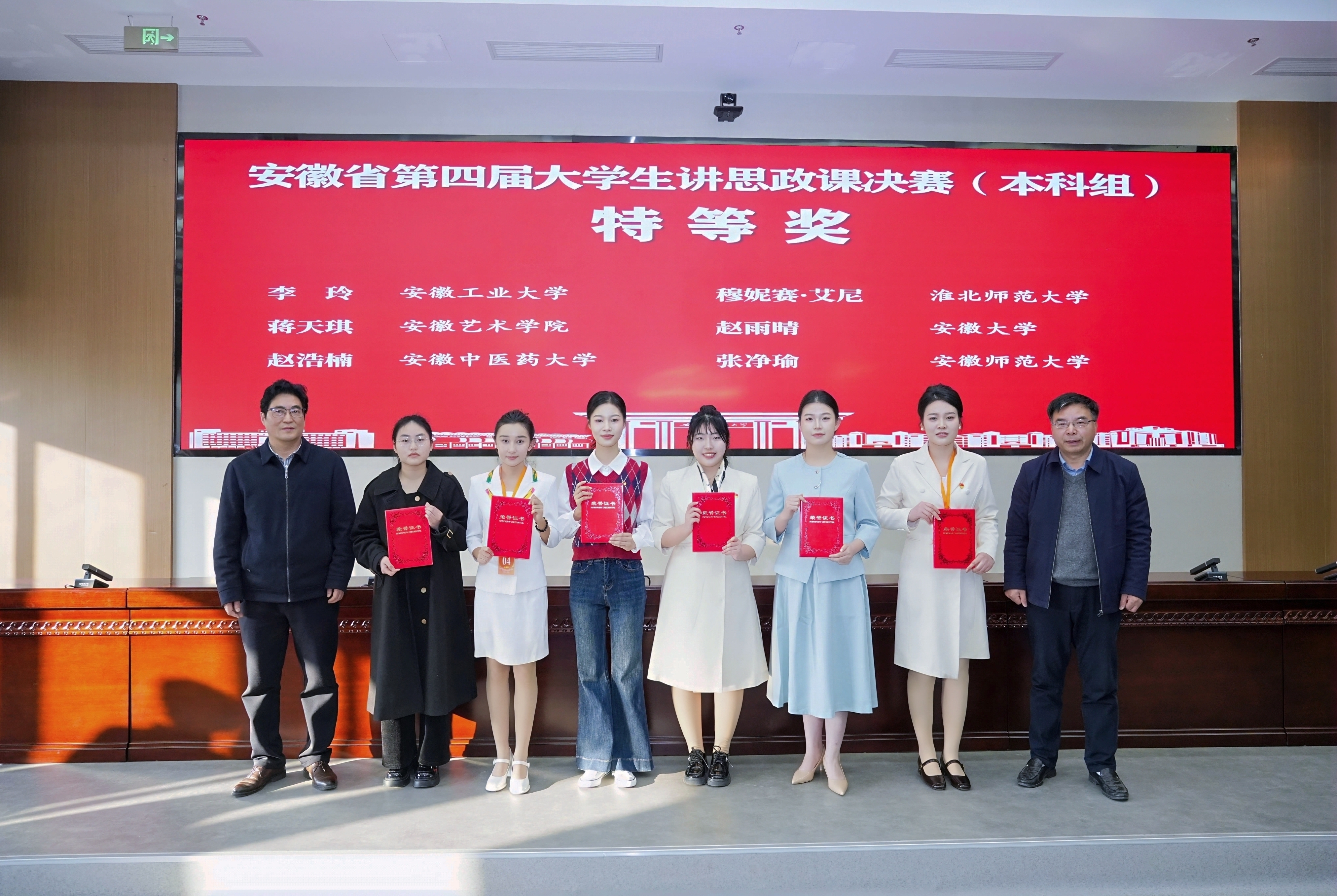 为深入学习贯彻全国、全省教育大会精神,坚持不懈用习近平新时代中国特色社会主义思想铸魂育人,推进“大思政课”建设, 12月27日,由中共安徽省委教育工委主办,教育部高校思想政治工作队伍培训研修中心(安徽师范大学)、安徽师范大学马克思主义学院承办的安徽省第四届大学生讲思政课决赛在我校举行。来自全省25所本科院校、45支参赛队伍参加决赛。经过激烈角逐,本次比赛共产生特等奖6名、一等奖8名、二等奖13名和三等奖18名。我校马克思主义学院张净瑜同学在比赛中表现突出,成功斩获特等奖。