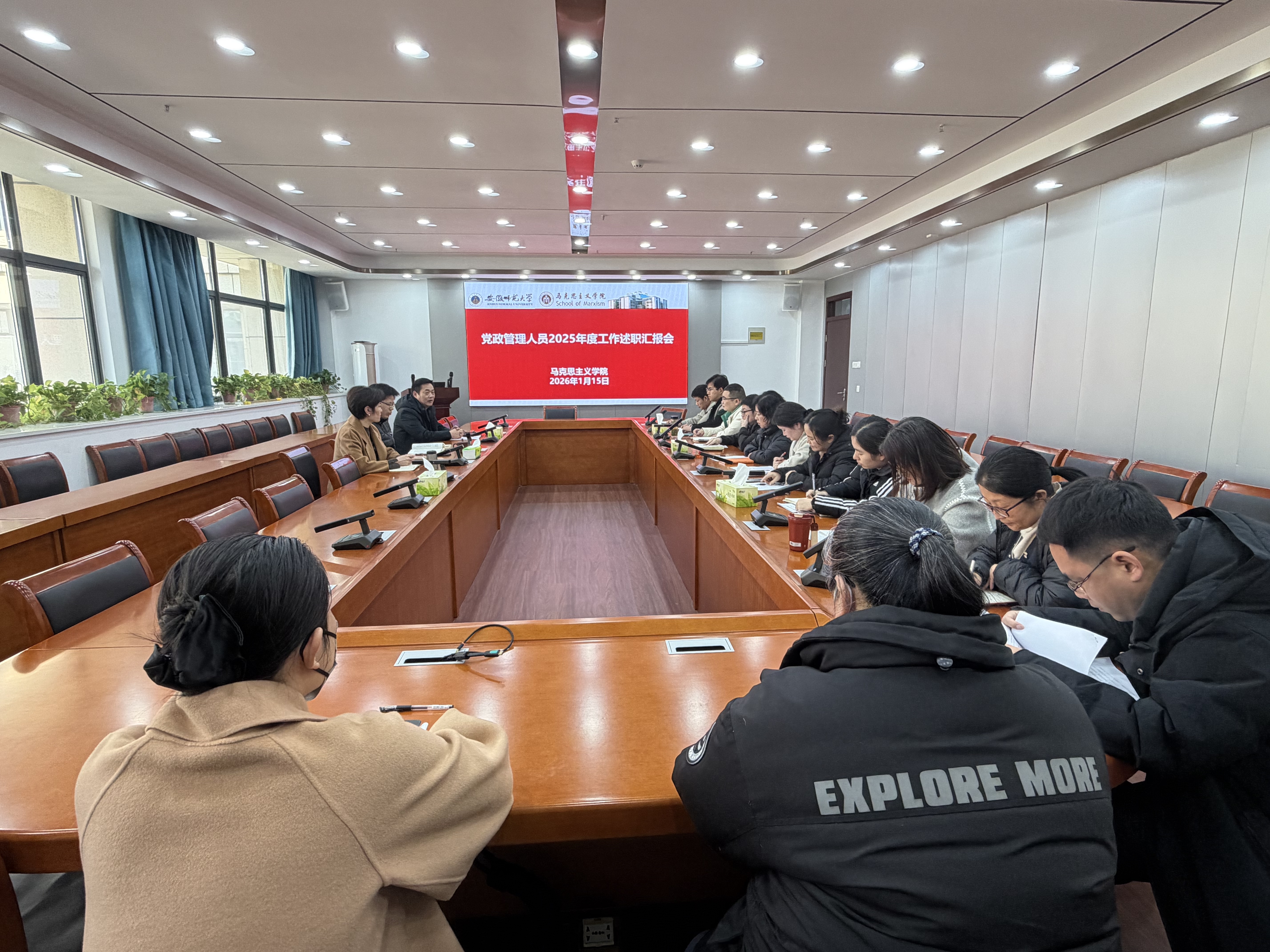 为进一步强化管理队伍建设,提升履职效能与育人质量。1月15日下午,我院组织召开2025年党政管理人员工作述职汇报会,学院党政班子成员,各科室秘书、全体专兼职辅导员参加,会议由副院长余本玉主持。