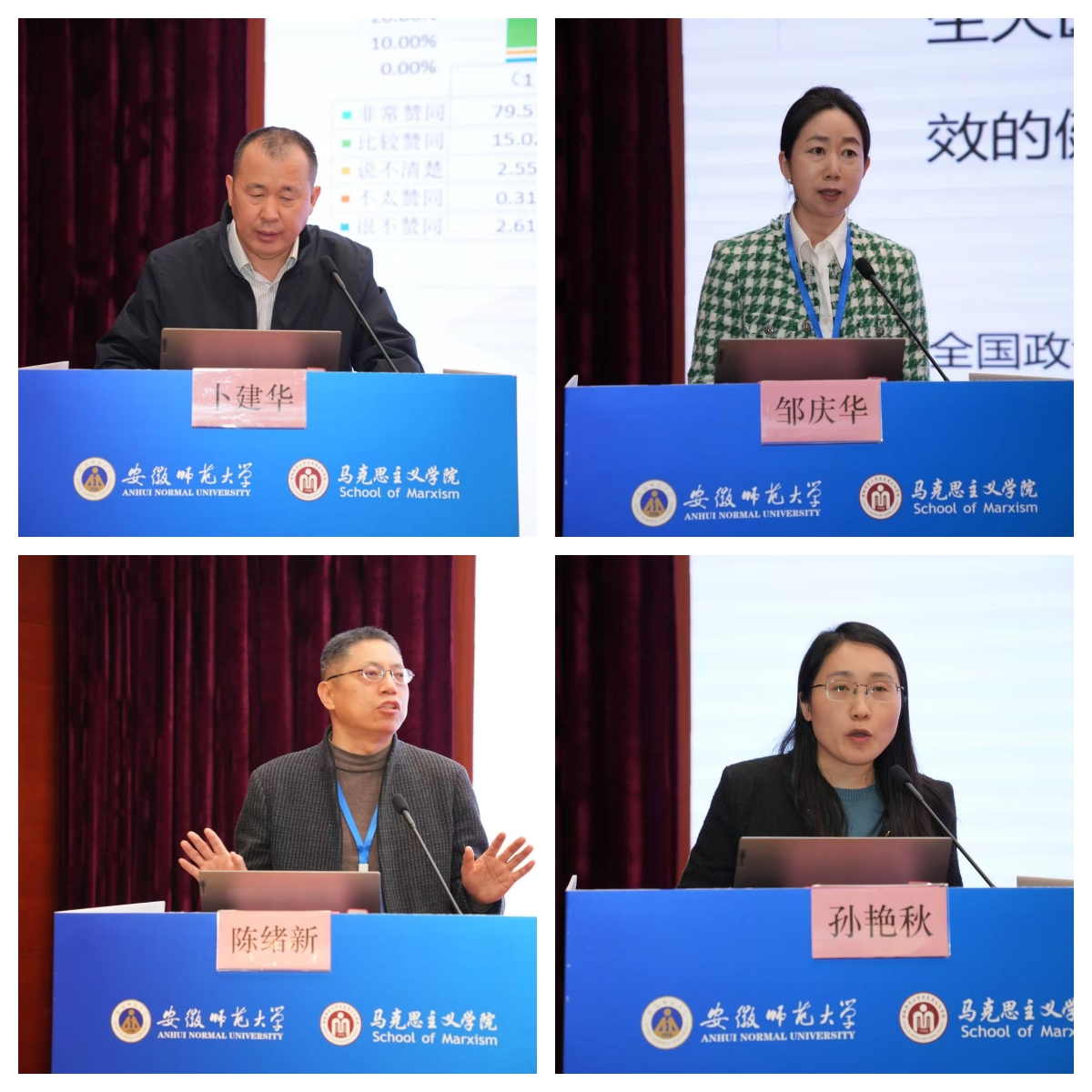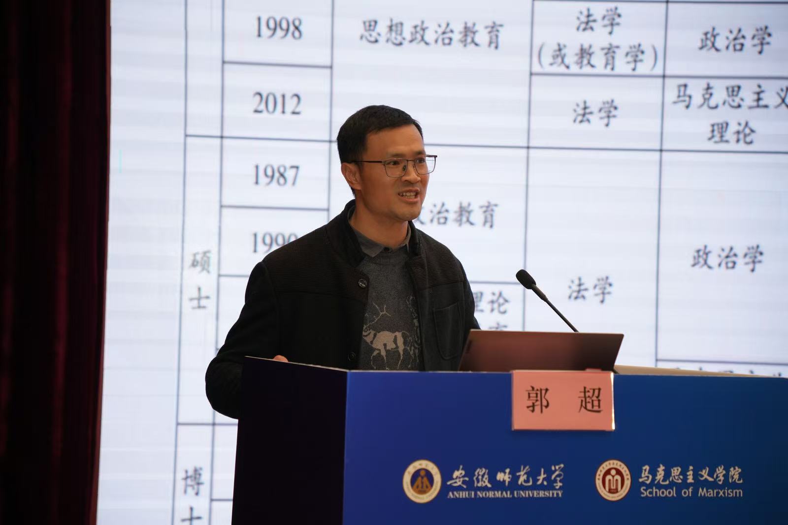 山东医药大学卜建华教授阐述了“个体化趋势下大学生时代使命担当的样态呈现及重构路径”、海南医科大学邹庆华教授阐述了“医学人文融入思政教育的协同育人路径”、江南大学陈绪新教授阐述了“新时代思想政治教育者的五项修炼”、安徽师范大学孙艳秋副教授阐述了“基于主要矛盾的新时代思想政治教育目的再追问”、安徽师范大学郭超副教授阐述了“勘定思想政治教育学科边界的辩证逻辑”。