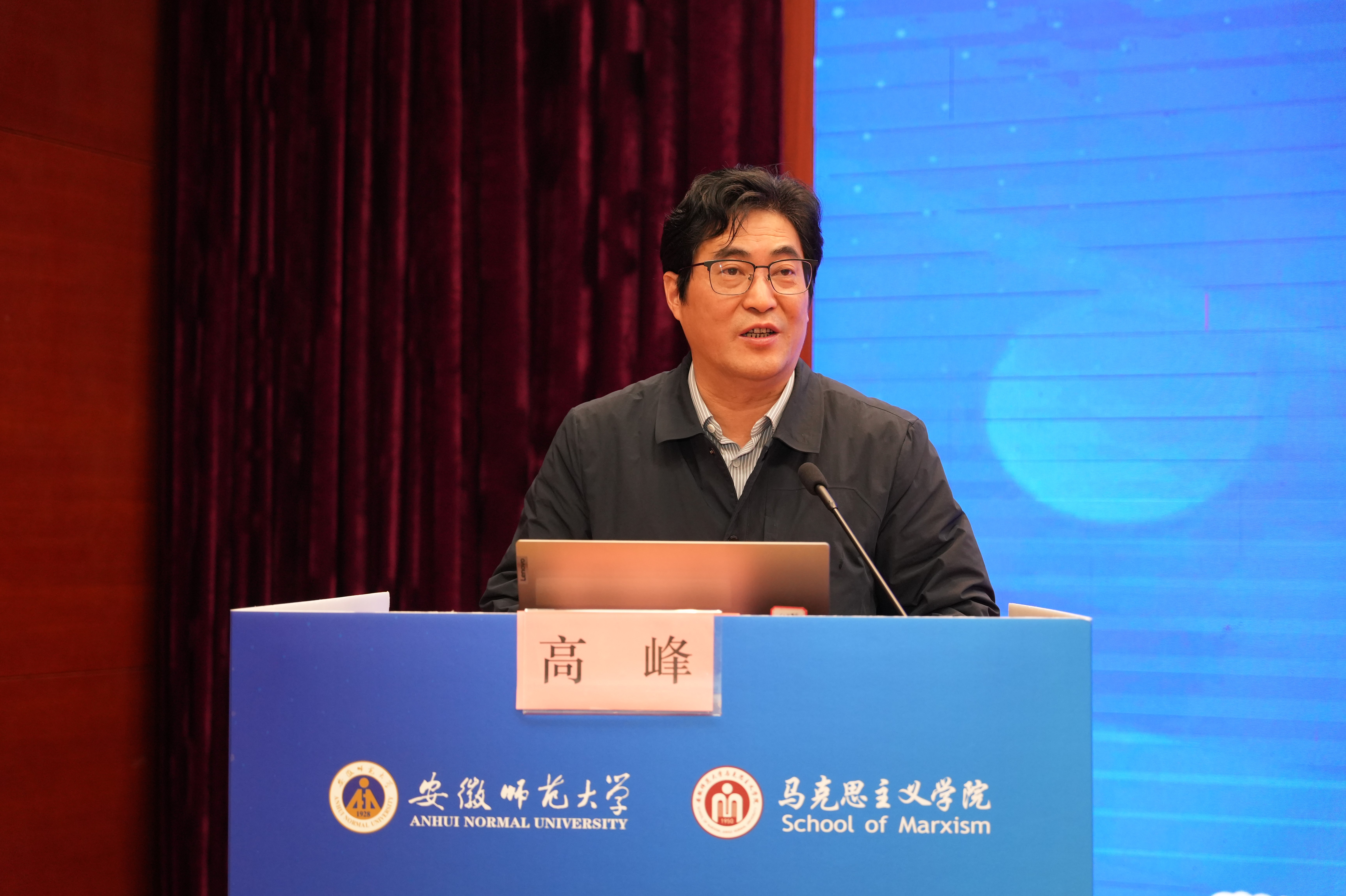 论坛开幕式上,安徽师范大学副校长高峰致辞。他代表学校向与会专家学者表示欢迎,并介绍了安徽师范大学办学历史、教师教育传统和高水平大学建设情况,强调希望以此次论坛为契机,持续加强马克思主义学院学科建设与人才培养。北京科技大学思想政治工作研究院院长冯刚教授在开幕式上致辞并围绕《中国共产党思想政治工作条例》做了主旨报告。