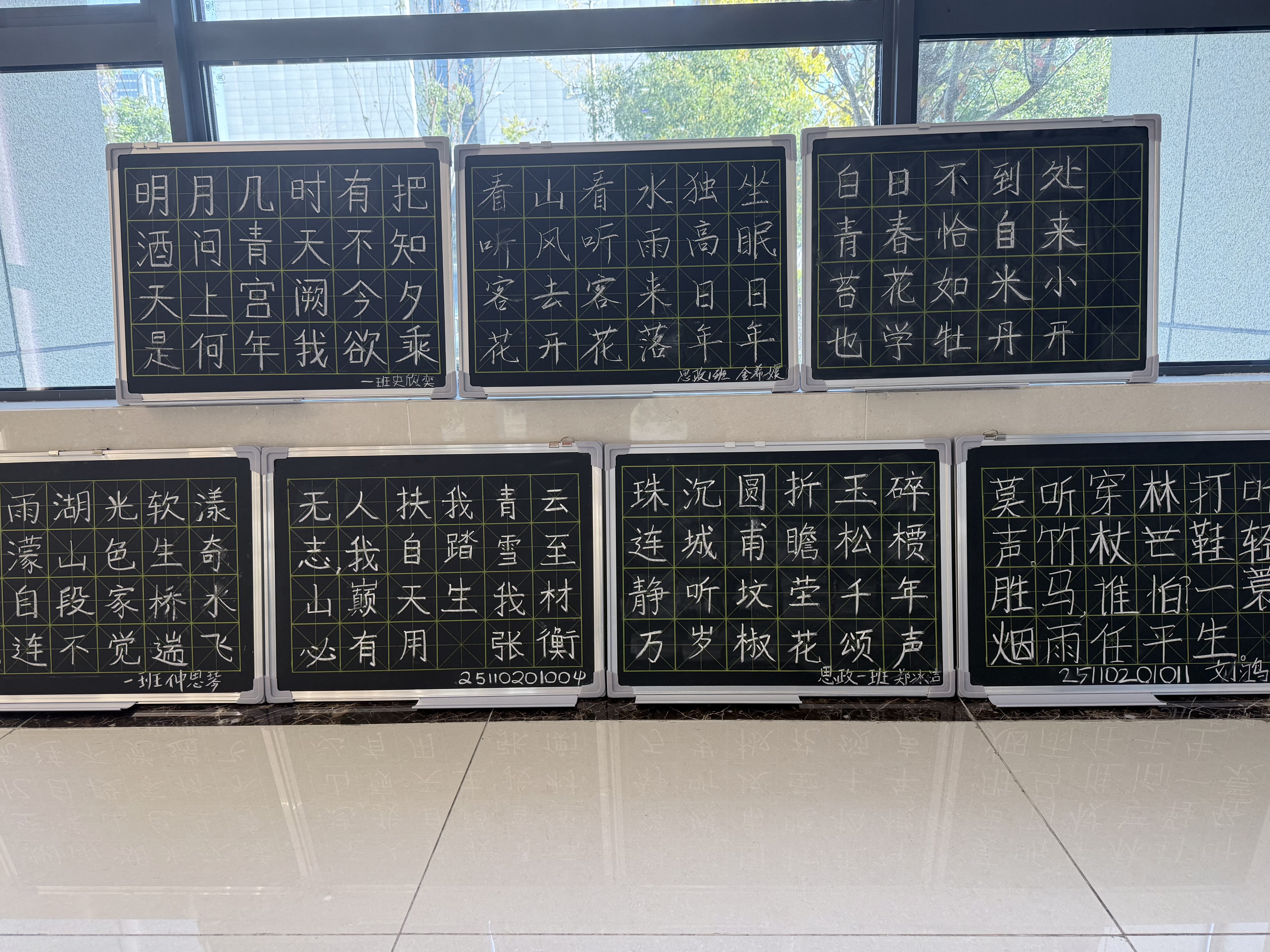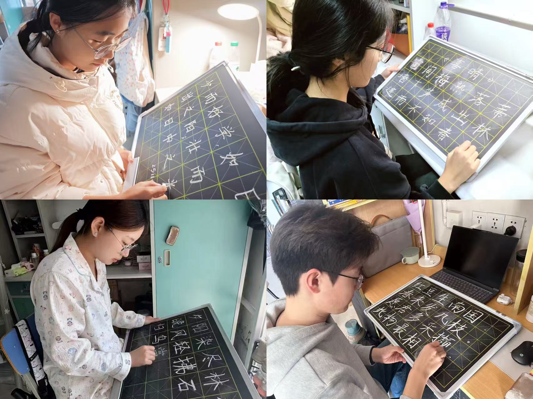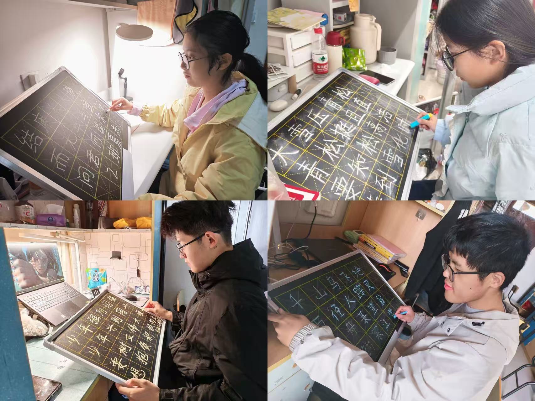 板书书写是教师开展日常教学的必备技能,更是推动教学过程审美化、提升课堂感染力的重要途径。学院以“小黑板进寝室”活动为依托,持续开展“天天练”板书打卡行动,每周对打卡作品进行评审,筛选出优秀板书,在学院一楼门厅进行集中展示,既为师范生提供学习借鉴的范例,也为技能提升营造比学赶超的良好氛围。