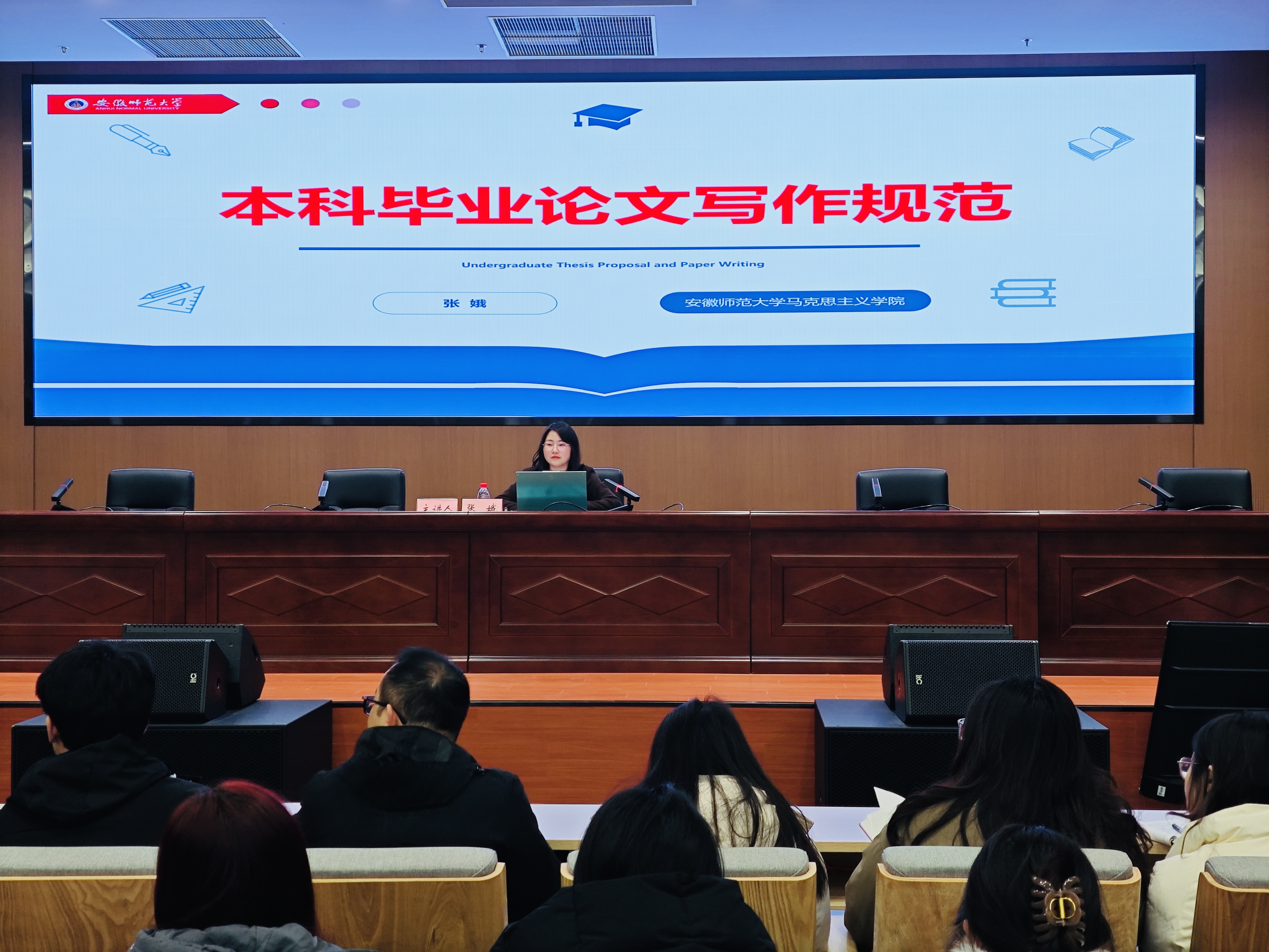 12月25日晚,学院在文典楼西裙楼三楼报告厅开展本科生毕业论文写作指导会。本次指导会由学院副教授张娥主讲,辅导员陶娴静主持,2022级全体本科生参与。