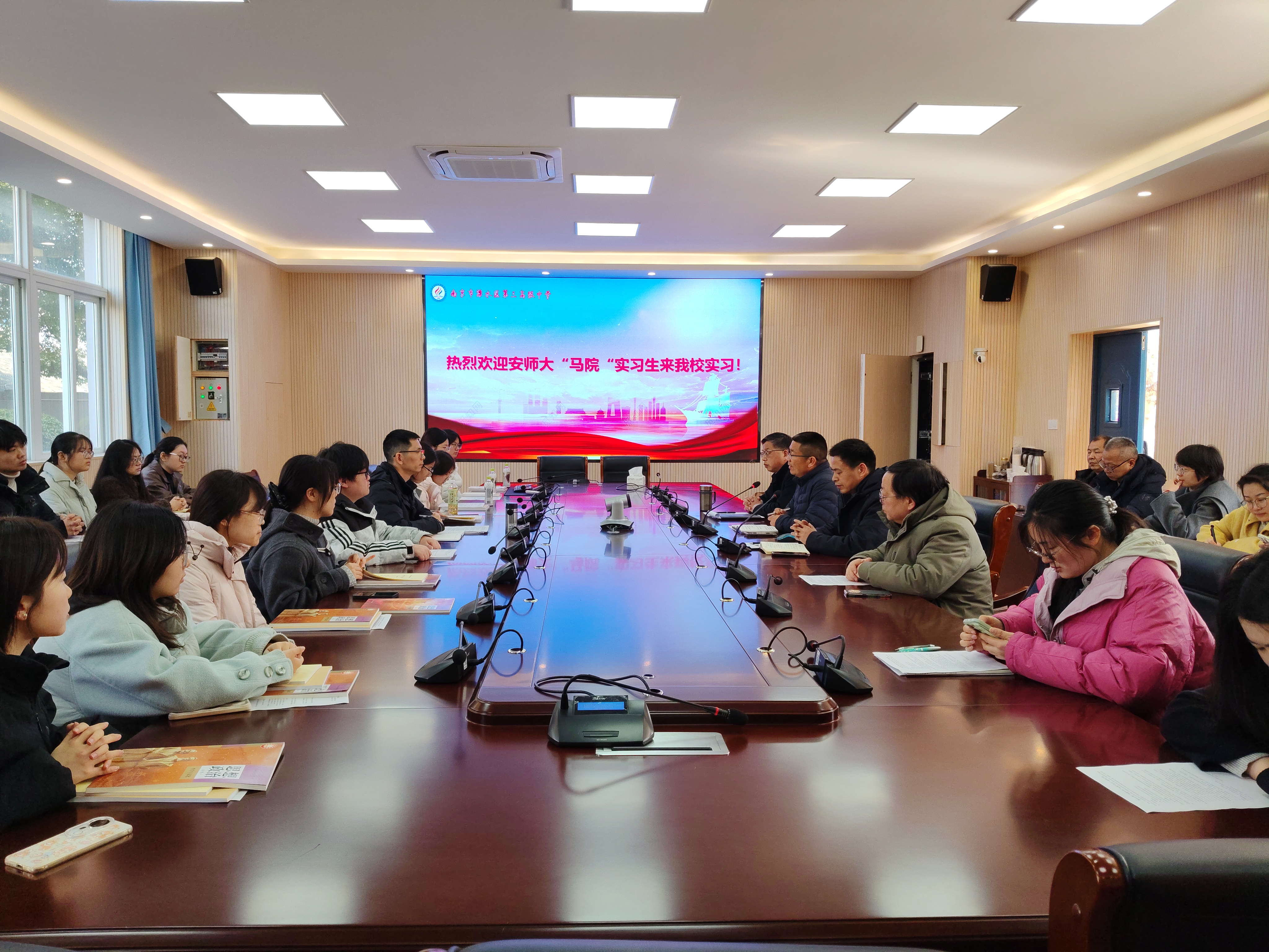 会上,溧水三中党委书记王道军对实习生一行表示热烈欢迎,勉励大家珍惜实习机遇,勤学善思、多听多学,发挥青年学子优势,将思政专业理论与教学实践紧密结合,在实践中打磨教学能力、形成个人教学风格。同时,他围绕实习纪律、日常管理、校园安全等方面,对实习生提出明确要求,叮嘱大家严守校规、规范言行,踏实完成实习任务。指导教师汤小宾代表学院,向溧水三中提供优质实践平台表示衷心感谢。他叮嘱全体实习生潜心钻研、精心备课,着力把思政课讲出深度、力度与温度,落实立德树人使命;同时恳请校内指导教师悉心指导、从严要求,助力实习生快速成长、提升本领。