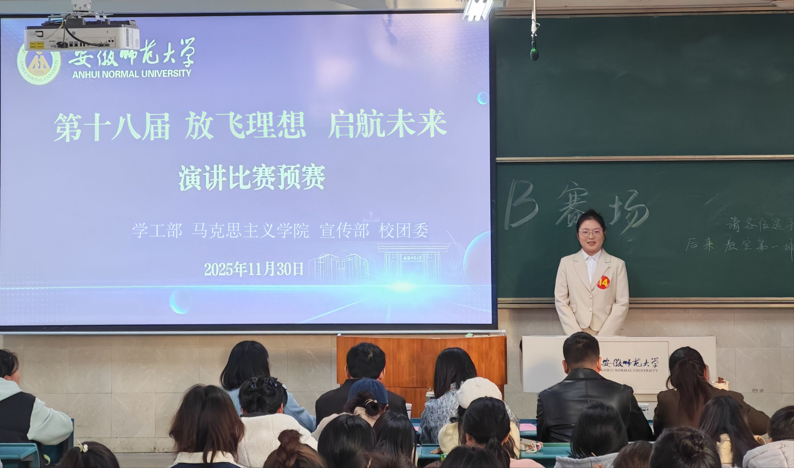 为引导2025级本科生以主人翁精神投身大学生护航行动计划,自觉规划学业发展,并提升其语言表达与综合素养,11月30日下午,由学工部、宣传部、校团委及马克思主义学院共同主办,学生德育研究会承办的第十八届“放飞理想 启航未来”新生主题演讲比赛预赛顺利举行。