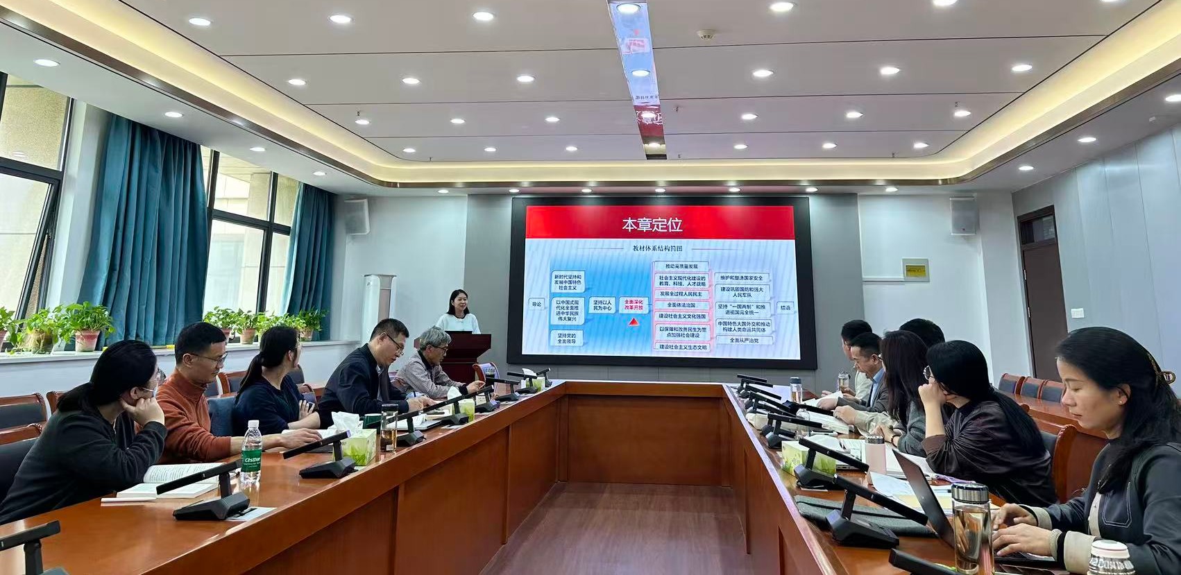 本次备课会围绕“全面深化改革开放”“推动高质量发展”“发展全过程人民民主”和“建设社会主义文化强国”等专题展开,匡宁、赵华美、王勇刚和李俊峰等老师就各专题的教学重点、内在逻辑、问题链条、最新资料等进行备课讲解。在交流环节,各参会老师就上述专题的重点难点问题、教学素材的运用、学生互动设计、教学方法选择、注意事项等展开讨论。沈燕培对各位老师的备课准备工作给予了肯定,并从教学态度、教学技巧、教学管理、教学内容等方面提出具体要求。