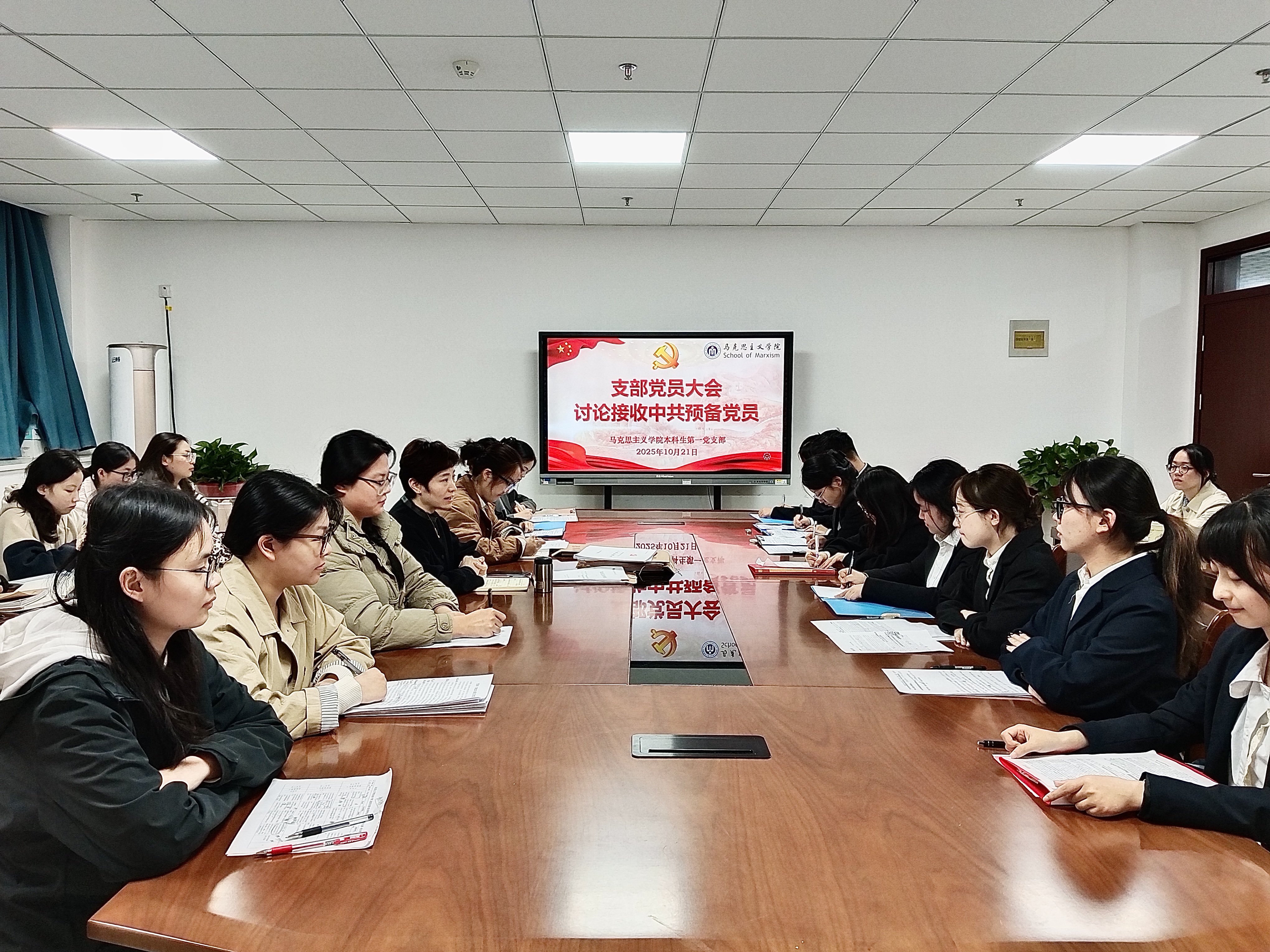 10月21日晚,马克思主义学院本科生第一党支部在学院G211会议室召开支部大会,讨论接收预备党员相关事宜。院党委副书记刘玉艳莅临指导,会议由支部书记陶娴静主持,全体党员参会。