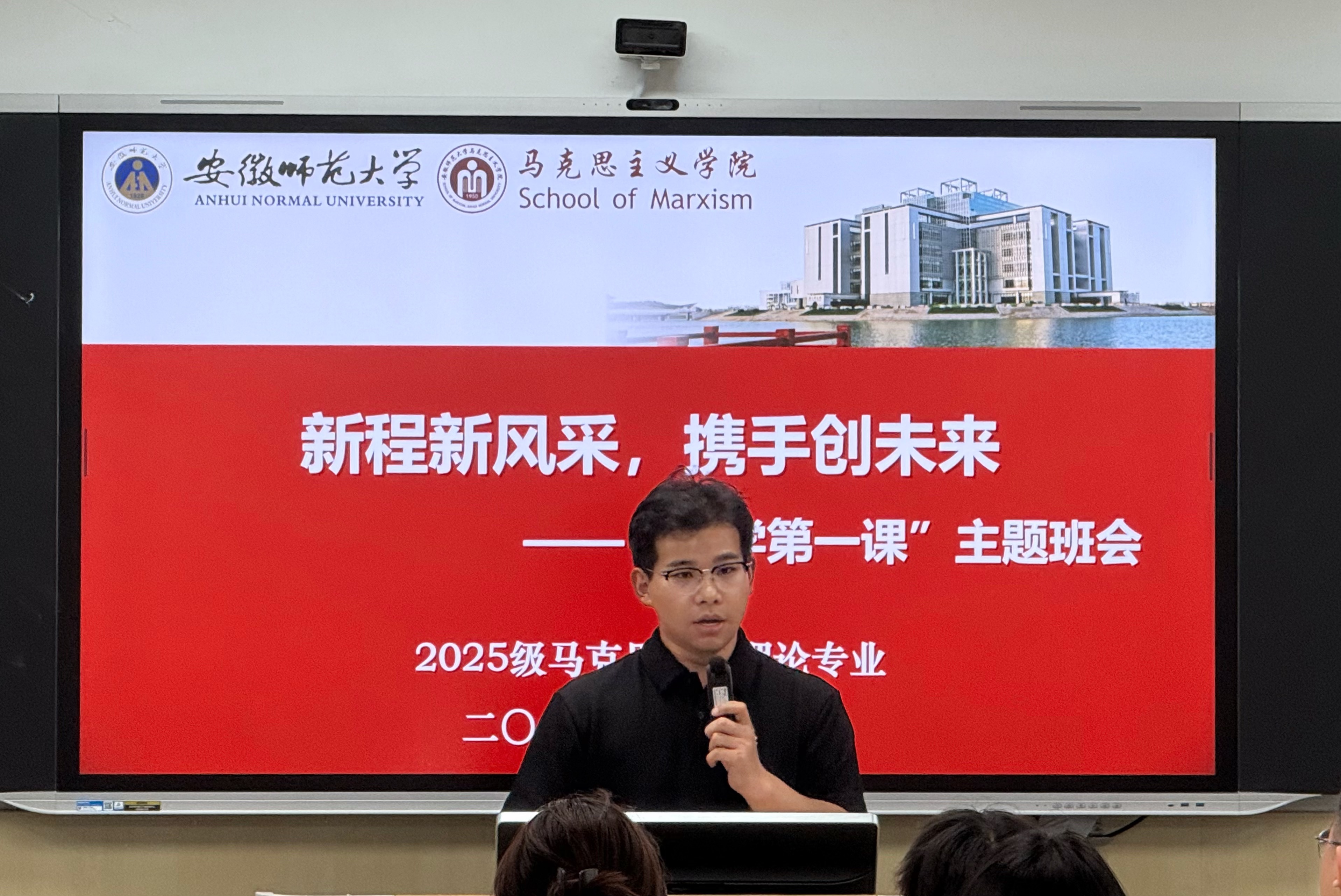 2025年9月20日,2025级马克思主义理论专业在望道楼D403教室顺利召开“新程新风采,携手创未来”开学第一课主题班会。本次班会由辅导员王梦雨主持,2025级马克思主义理论专业全体新生参加。