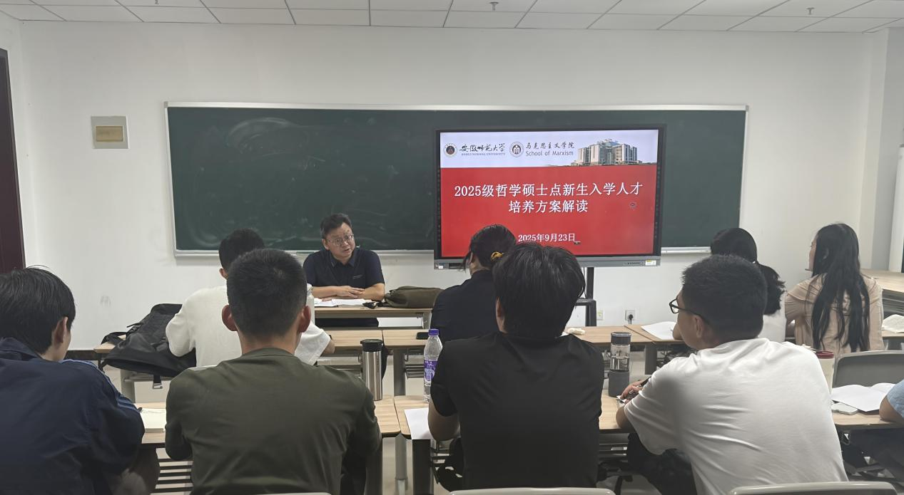 9月23日下午,安徽师范大学马克思主义学院哲学硕士点文典楼G113教室成功召开2025级新生入学人才培养方案解读会。会议由哲学一级硕士点负责人余在海教授主持,全体哲学专业硕士新生参加。