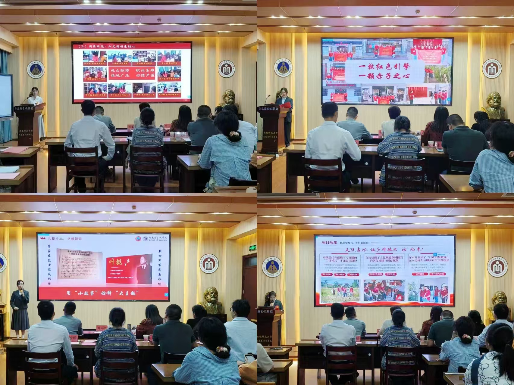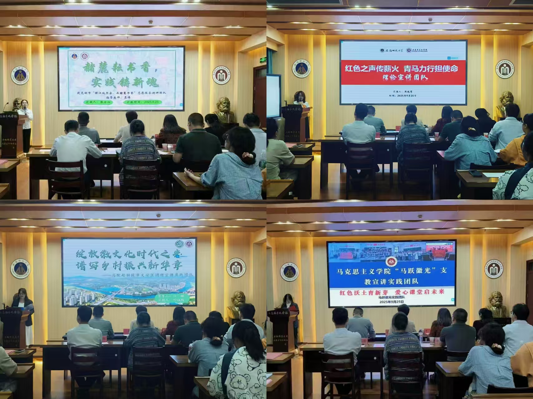 汇报会上,25支实践团队以图文并茂的演示文稿为载体,将实践故事与理论思考深度融合。从走进社区开展理论宣讲,用青言青语让党的创新理论“飞入寻常百姓家”;到聚焦乡村振兴、基层治理等现实议题开展实地调研,以马克思主义立场观点提出对策;再到深入偏远地区开展支教帮扶、志愿服务,用行动传递温度。