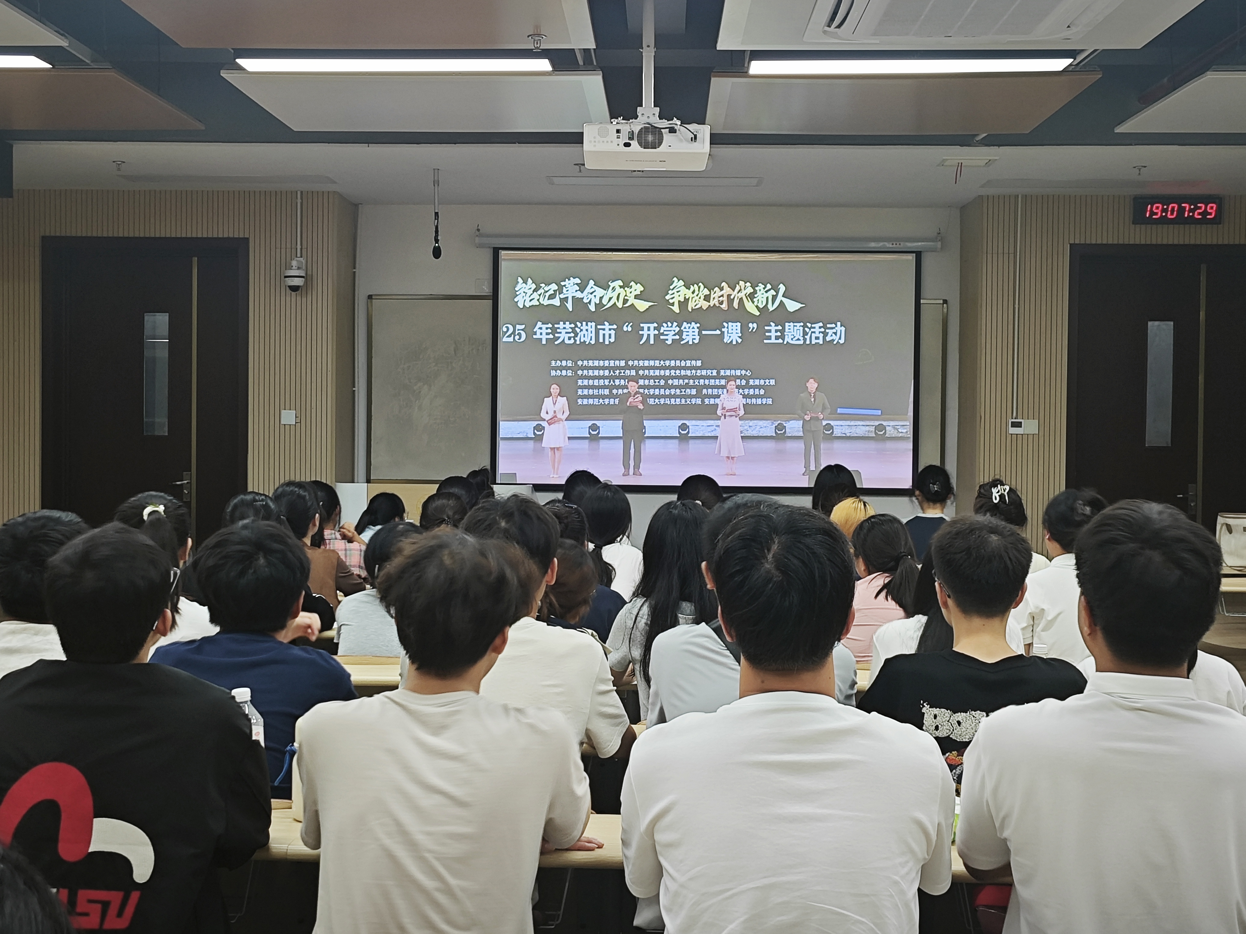 会上,全体同学共同观看了芜湖市“铭记革命历史,争做时代新人”开学第一课主题教育活动的直播。同学们共同回顾了那段峥嵘岁月,接受了一次深刻的爱国主义精神洗礼。大家深切感受到今日美好生活的来之不易与伟大祖国的繁荣昌盛,进一步坚定了理想信念,激发了担当时代重任的使命感。许雯就国庆、中秋双节期间的安全事项向同学们作了重点提醒。内容涵盖交通安全、公共安全、用火用电安全以及防溺水等多个方面。此外,针对当前高发的电信网络诈骗,班会进行了再次强调和警示教育。最后,许雯就节后的学习与生活进行了简要安排,鼓励同学们在享受假期的同时,也要做好规划,合理安排时间,在大学这个广阔的平台上不断汲取知识、锻炼能力、提升自我,以饱满的精神状态迎接节后的学习生活。