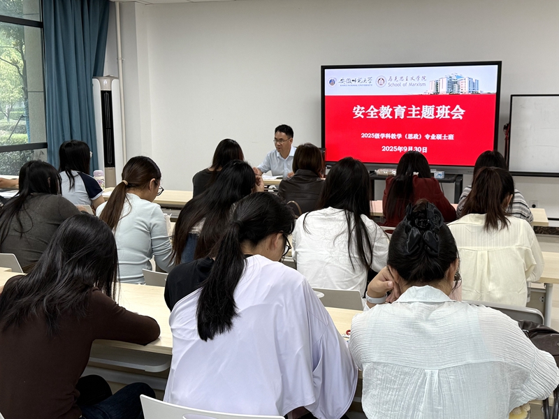 9月30日上午,马克思主义学院2025级学科教学(思政)专业硕士班在文典楼G105教室召开安全教育主题班会。班会由辅导员周楠主讲,班级全体同学参加。