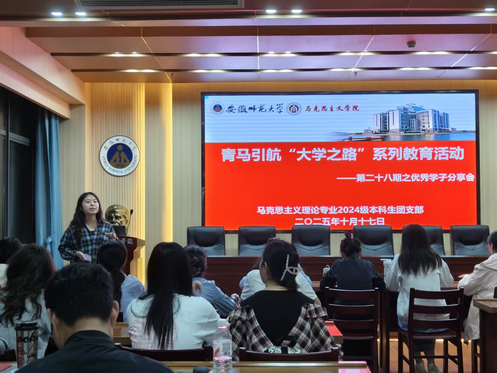 10月17日晚,2024级马克思主义理论专业在学院一楼G108会议室成功举办优秀学子分享会。本次活动由团支书陈沁茹主持,班级全体同学参与。