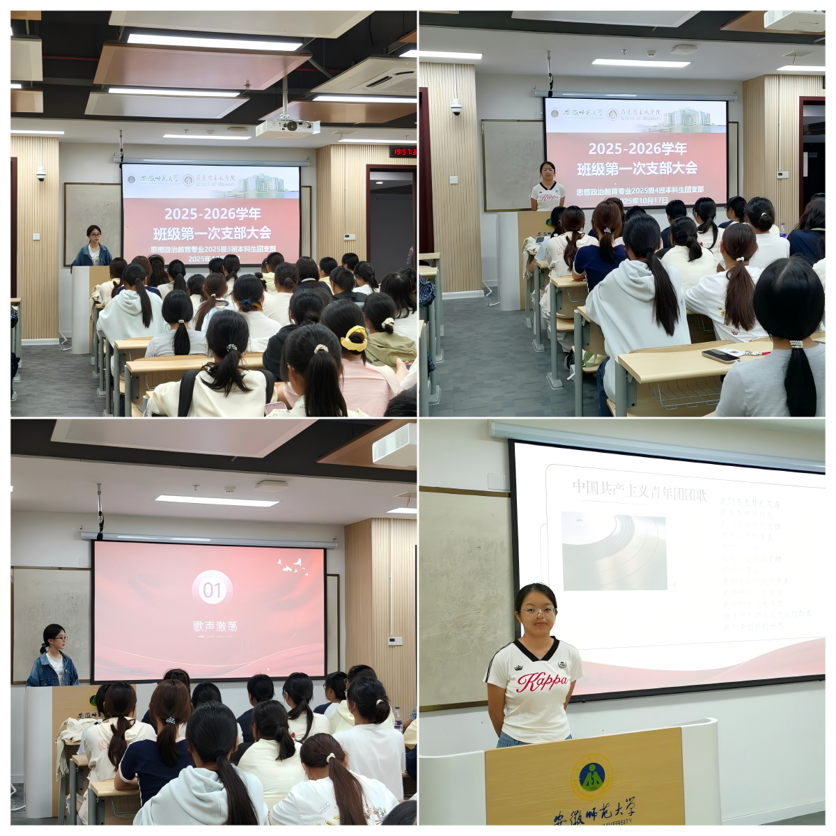 为筑牢青年团员思想根基,规范团组织生活,10月17日,2025级思想政治教育专业3班与4班团支部召开2025-2026学年第一次团支部大会,由两班团支书胡书玮、陈若蘅主持。