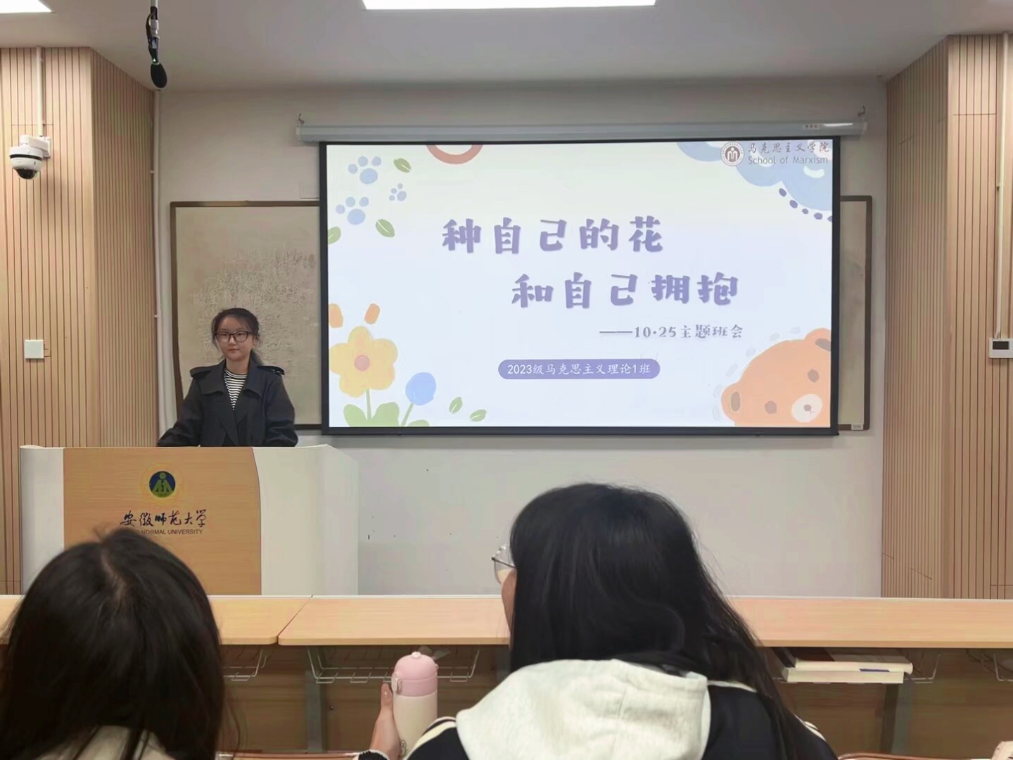 10月24日,马克思主义学院2023级本科生各班级在望道楼E204、E205、E209教室开展心理健康主题班会。本次活动由各班心理委员主持,全体同学参加。