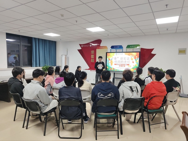为强化同学们食品安全防范意识,筑牢安全健康防线,10月23日晚,2024级思想政治教育专业本科班以“食话实说·共同的责任”为主题,开展安全教育活动。由方钧杭主讲,同学积极参与。