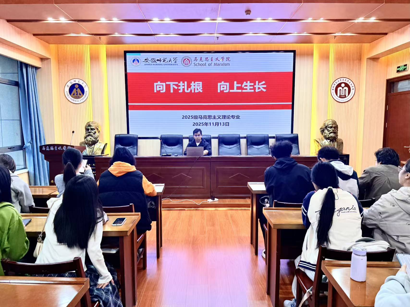 为帮助2025级马克思主义理论专业本科生明确大学生涯规划,全方位提升综合素养,11月13日,马克思主义理论专业本科生在学院108教室召开“向下扎根,向上生长”主题班会。本次班会由辅导员王梦雨主讲,全体学生参与。