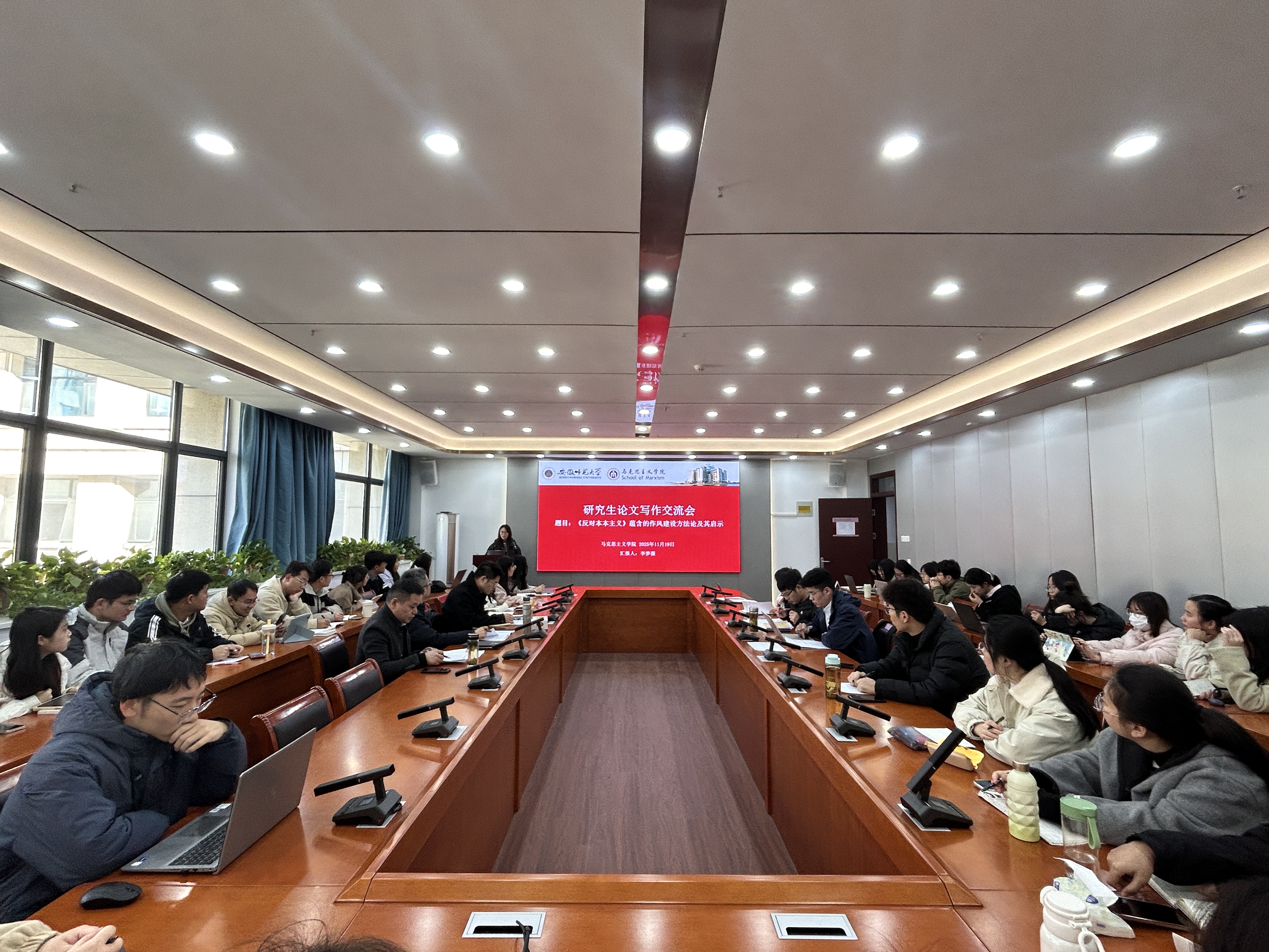 本期研究生论文写作交流会通过跨视角对话、专业化指导,助力研究生夯实理论基础、拓宽研究视野、锤炼写作技能,进一步涵养互学共进学术生态。