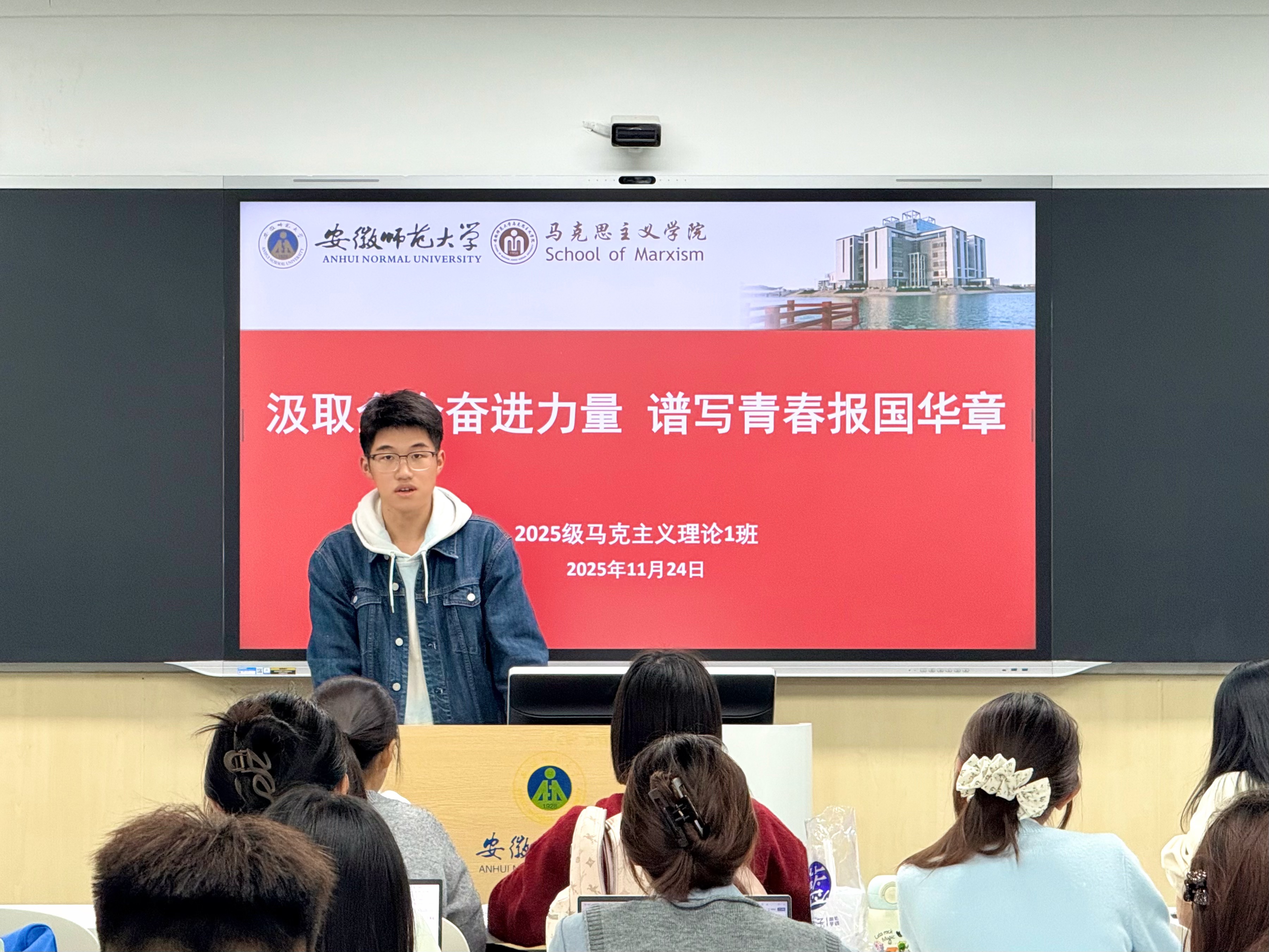 为深入贯彻党的二十届四中全会作出的战略部署,11月24日晚,2025级马克思主义理论1班团支部在望道楼D402教室开展了“汲取全会奋进力量 谱写青春报国华章”主题团日活动集中学习全会精神。本次团日活动由团支书王梓锐主持,全班同学参与。
