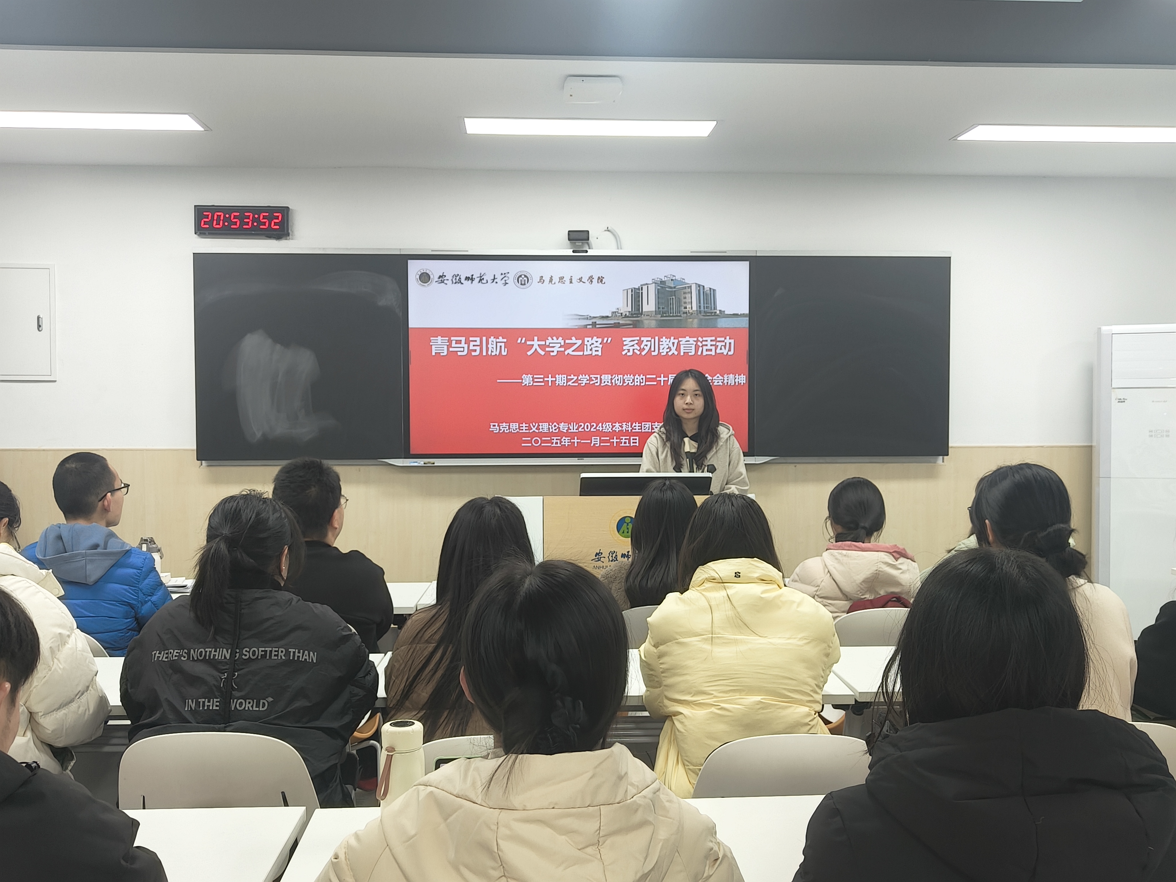 11月25日晚,马克思主义理论专业2024级本科生团支部在望道楼D401教室举办学习贯彻党的二十届四中全会精神主题团日活动。