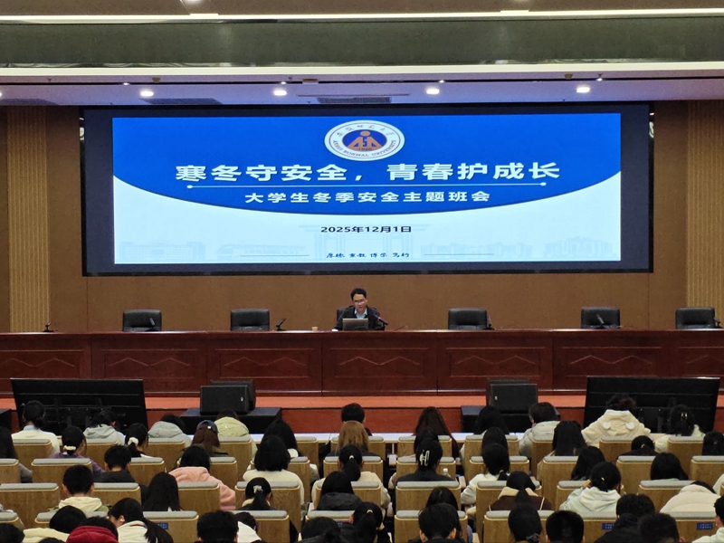12月1日晚,2024级思想政治教育专业本科班在文典楼西侧裙楼三楼报告厅开展了冬季安全教育主题班会。本次班会由辅导员周楠主讲,2024级全体本科生参加。
