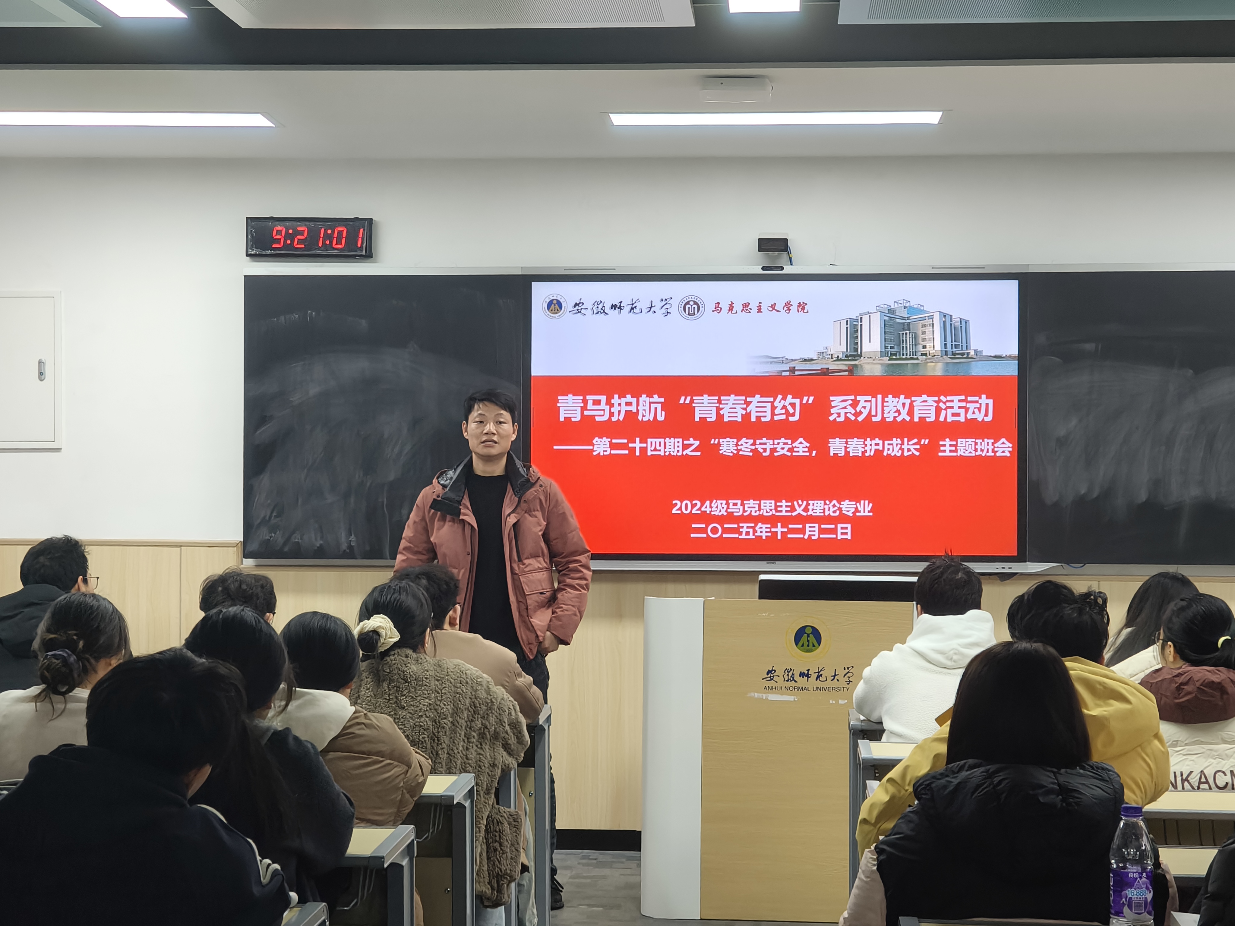 12月2日上午,2024级马克思主义理论专业在望道楼D301教室举办“寒冬守安全,青春护成长”主题班会。本次班会由辅导员夏盼盼老师主持,全体同学参加。