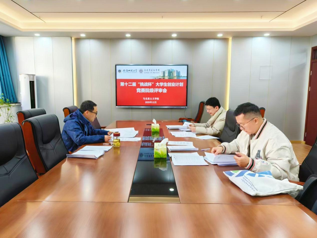 12月15日上午,马克思主义学院在文典楼G407会议室举办第十二届“挑战杯”大学生创业计划竞赛院级评审会。此次评审会邀请学院单传友、王子廓、龚伟三位老师担任评委。