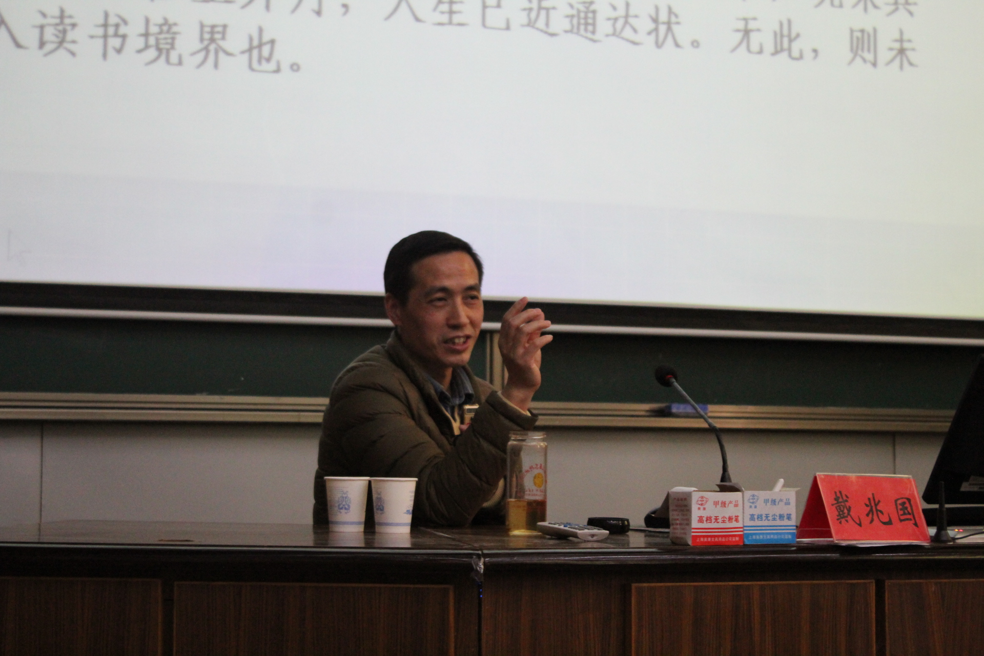 戴兆国分别从时空哲学的缘起,人存在的本质,哲学感悟等方面向同学们阐述了三界时空哲学。他尤其强调:功名利禄是人生奋斗的起点,但却不是人生奋斗的目的。人能立功,不可邀功;可得实名,不求虚名;可获实利,不能穷利;可受俸禄,不能贪禄。名至实归处,君子皆能坦然;名实相悖时,君子当能决绝,引导我们大学生运用哲学智慧树立正确的人生观,价值观,收获精彩人生。