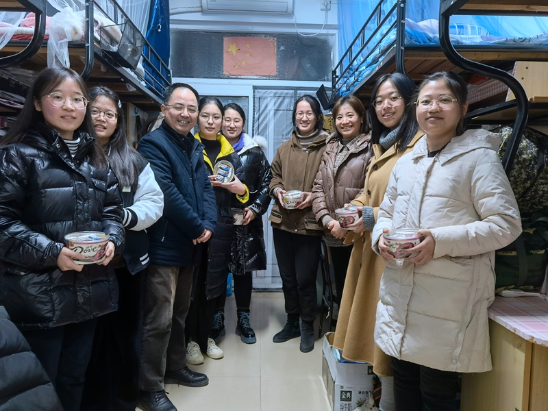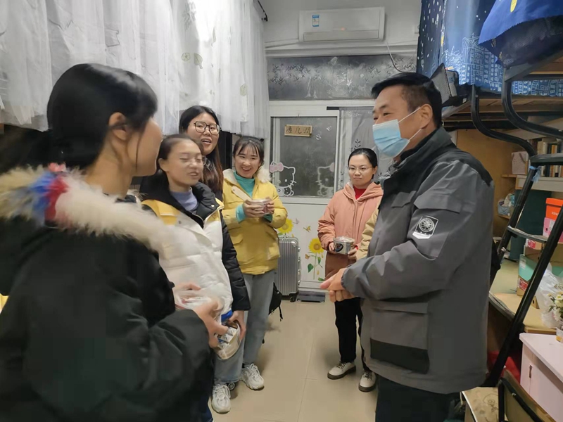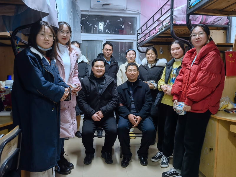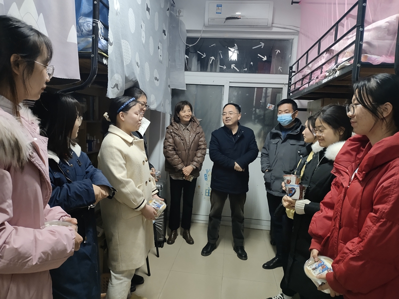 本网讯(文/鲍逸麟 摄/迟敏)在全国硕士研究生入学考试即将来临之际,为帮助学生增强考研信心、鼓舞考研士气,12月22日晚,马克思主义学院院长姚宏志,党委副书记刘玉艳,副院长李祥兴、赵冰、余本玉,辅导员周楠走进学生寝室看望慰问考研学子,为考研学子送上冬日的温暖。