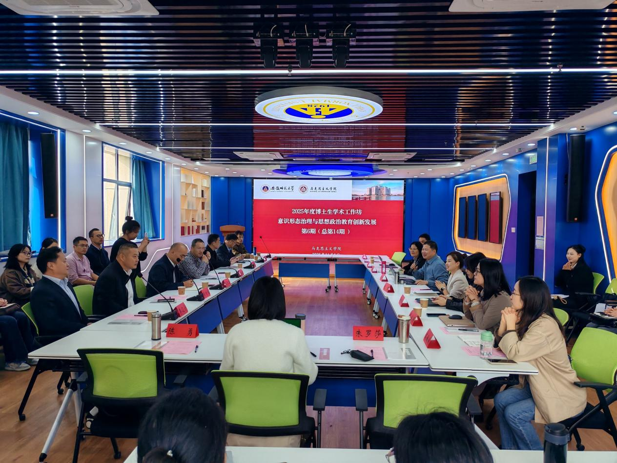 2025年11月1日,学院在文典楼G308成功举办“意识形态治理与思想政治教育创新发展”学术工作坊活动。本次活动特邀来自西南大学、浙江大学、北京师范大学、湖南大学、四川大学、大连海事大学、安徽师范大学的12位专家和全国高水平期刊的2位资深编审出席。学院青年教师、思想政治教育学位点的博士生、硕士生代表等50余人现场参加本次学术活动。